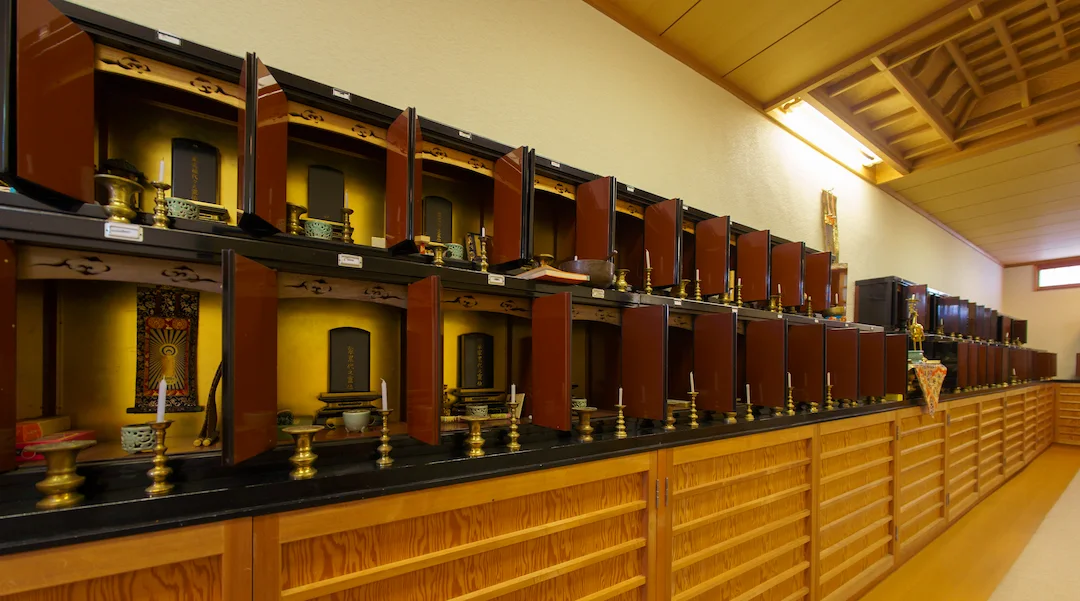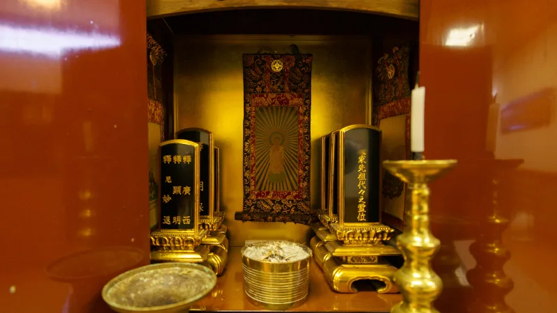 また、当寺の本尊の後ろには、納骨堂があり、こちらへの納骨も可能です。一般的な墓地とは違い、静かに手を合わせられる「お堂の中の安らぎの場所」として、多くの方に選ばれております。